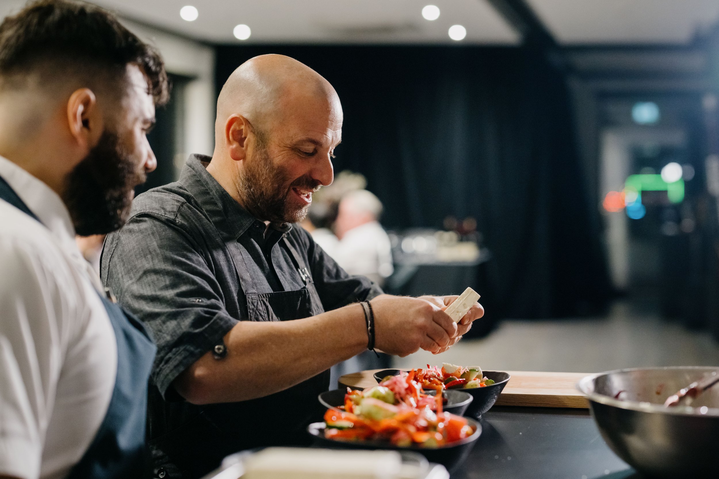 Designed as a high-end hospitality environment, the evening centred around a multi-course Greek dining experience curated and presented by celebrity chef George Calombaris, bringing a sense of theatre and culinary storytelling to the event.